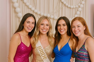 Bachelorette-ready makeup lounge with vanity mirrors & plush stools
